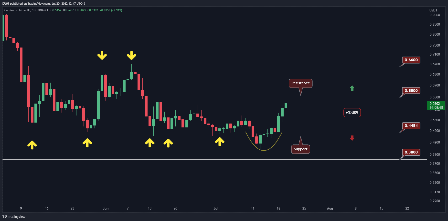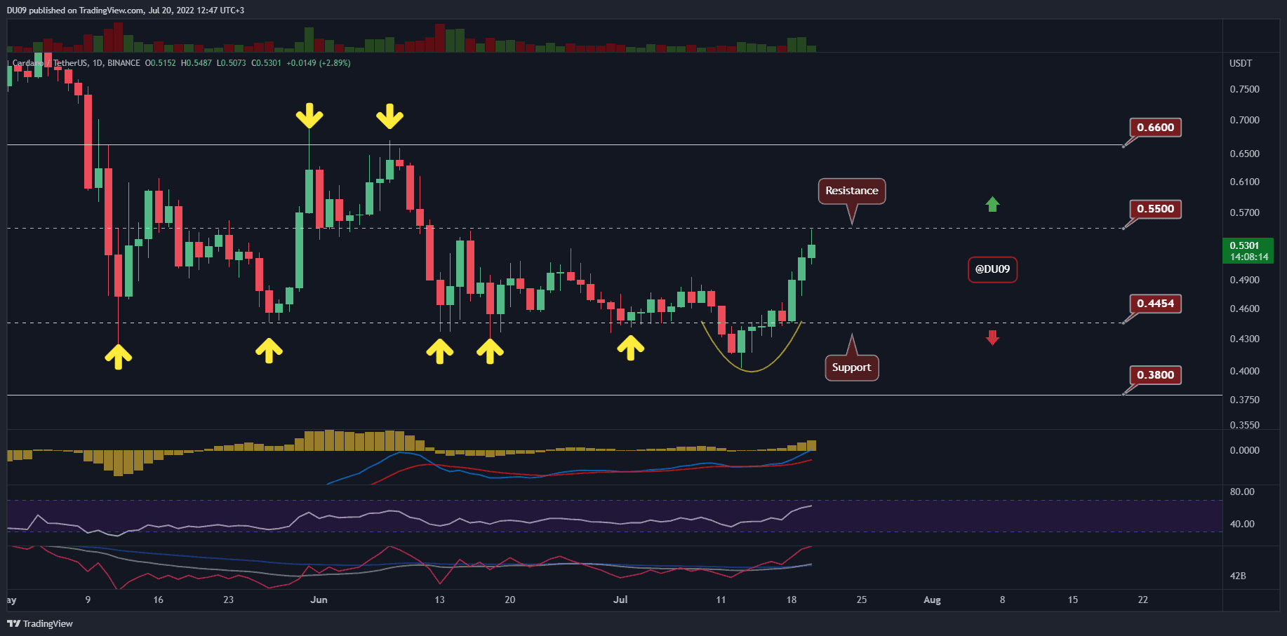 ADA Skyrockets 7% Daily But Will $0.55 Fall? (Cardano Price Analysis)