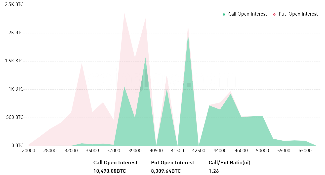 Una vista más amplia que utiliza la relación call-to-put de 1.26 muestra apuestas más importantes, ya que el interés abierto de call (compra) se sitúa en USD 425 millones frente a los USD 335 millones de opciones de venta (put). Sin embargo, dado que Bitcoin ahora está nuevamente por encima de los USD 40,000, la mayoría de las apuestas bajistas probablemente perderán su valor.