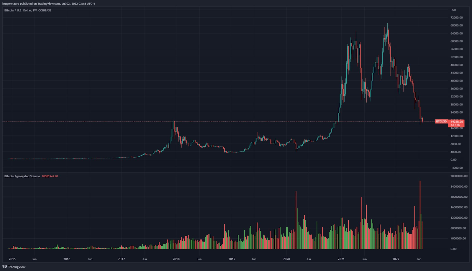 Though Krüger thinks BTC is already in the early stages of developing a bottom, he also believes the top virtual money will not rise anytime in the near future.