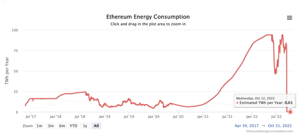 Ethereum energy consumption, 13 Oct 2022, Source: Digiconomist.net