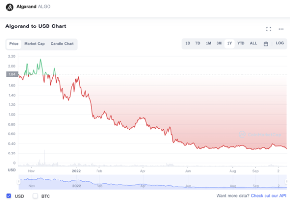 Algorand 1-year price chart, 13 Oct 2022, Source: CoinMarketCap