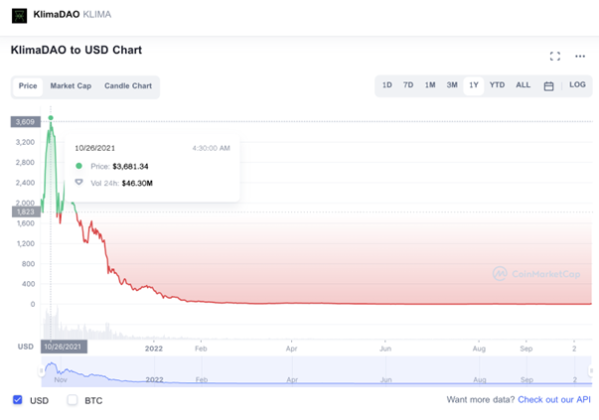KlimaDAO 1-year price chart, 13 Oct 2022, Source: CoinMarketCap
