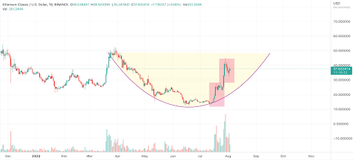 The ETC price broke out from the lower support and formed a notable bull flag. Further, the asset broke out from the flag and currently consolidating, forming another bull flag. Therefore, appears to be primed for another 55% upswing to mark the levels above $55 very soon.
