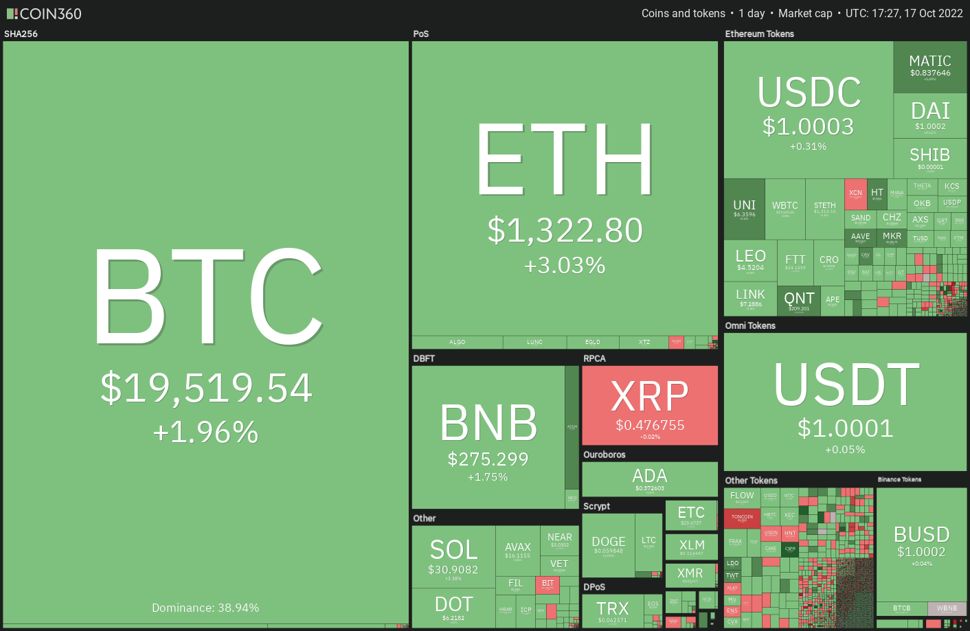 Análise de preços 17/10: BTC, ETH, BNB, XRP, ADA, SOL, DOGE, DOT, MATIC, SHIB