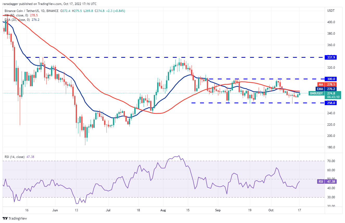 O BNB (BNB) vem se consolidando entre US$ 258 e US$ 300 nos últimos dias. Os touros estão tentando empurrar o preço acima das médias móveis em 17 de outubro.