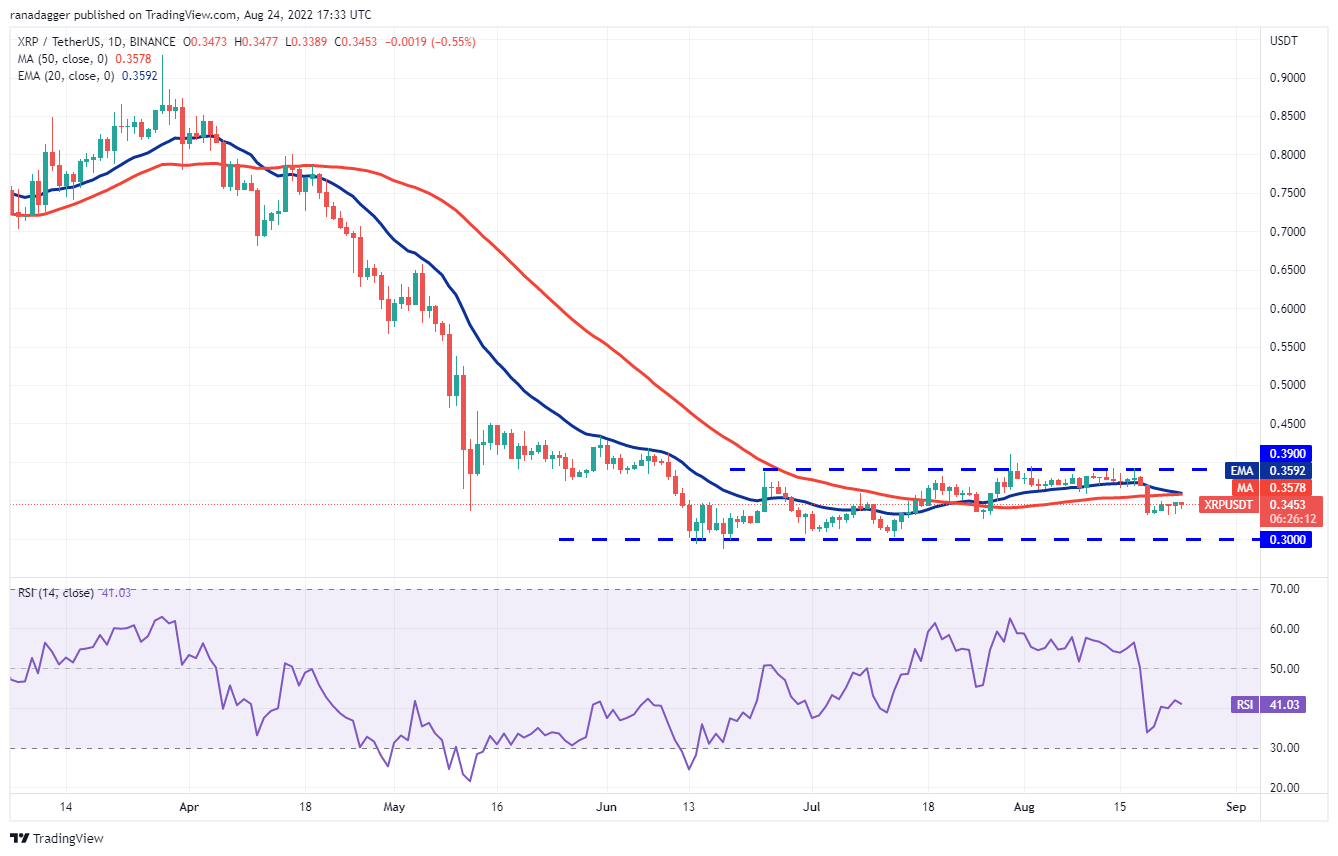 Se o preço cair e ficar abaixo de US$ 0,33, a vantagem pode inclinar a favor dos vendedores. O par XRP/USDT pode então cair para o nível crucial de US$ 0,30. Os touros provavelmente defenderão esse nível agressivamente. Uma forte recuperação deste nível sugerirá que o par pode permanecer dentro do intervalo entre US$ 0,30 e US$ 0,39 por mais algum tempo.