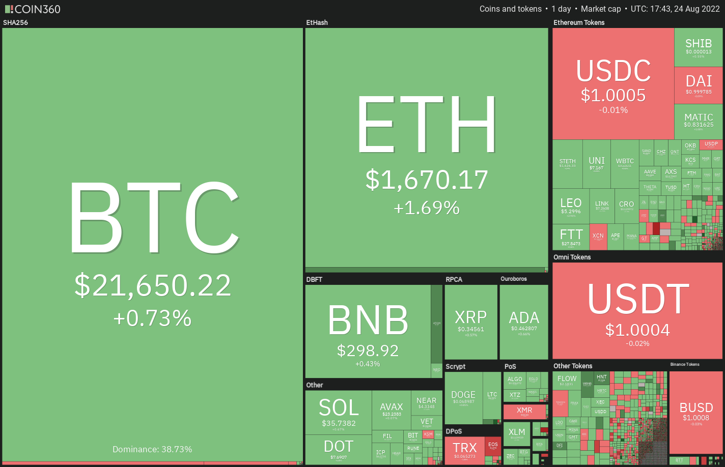 Bitcoin (BTC) e várias criptomoedas importantes têm sido negociadas de lado, já que os traders evitam fazer grandes apostas antes do Simpósio Econômico Jackson Hole do Federal Reserve dos Estados Unidos, que começa em 25 de agosto. A volatilidade deve aumentar assim que os investidores tiverem alguma clareza sobre a postura do Fed nos próximos dias.