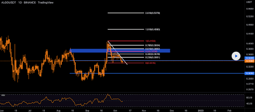 I partecipanti al mercato rialzista di ALGO stanno cercando di mantenere il loro terreno con l’RSI sulla scala temporale giornaliera sottostante che mostra una continuazione negativa.