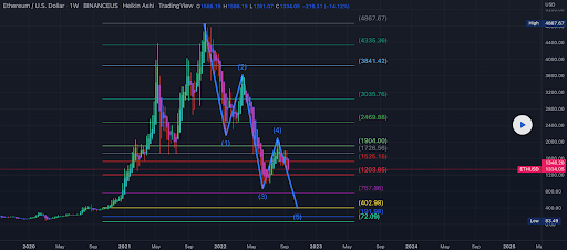 Il secondo grafico che osserviamo oggi è il grafico a 1 settimana di ETH/USD, realizzato da EMC2PRoPheT. Il prezzo di ETH è scambiato tra il livello di $1.203,85 e il livello di $1.525,15, al momento della scrittura.