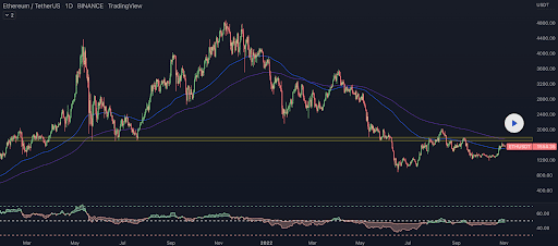 Il prezzo di ETH è ancora bloccato al di sotto di un importante range di prezzo sul time frame giornaliero di ETH.