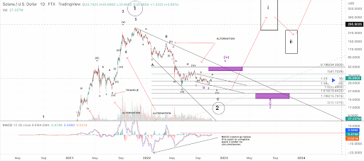 L’ultimo grafico da esaminare questo lunedì è il grafico a 1 giorno SOL/USD di maikisch. Il prezzo di SOL è scambiato tra il livello 1,236 fib [$31,17] e il livello 1 fib [$41,72], al momento della scrittura.