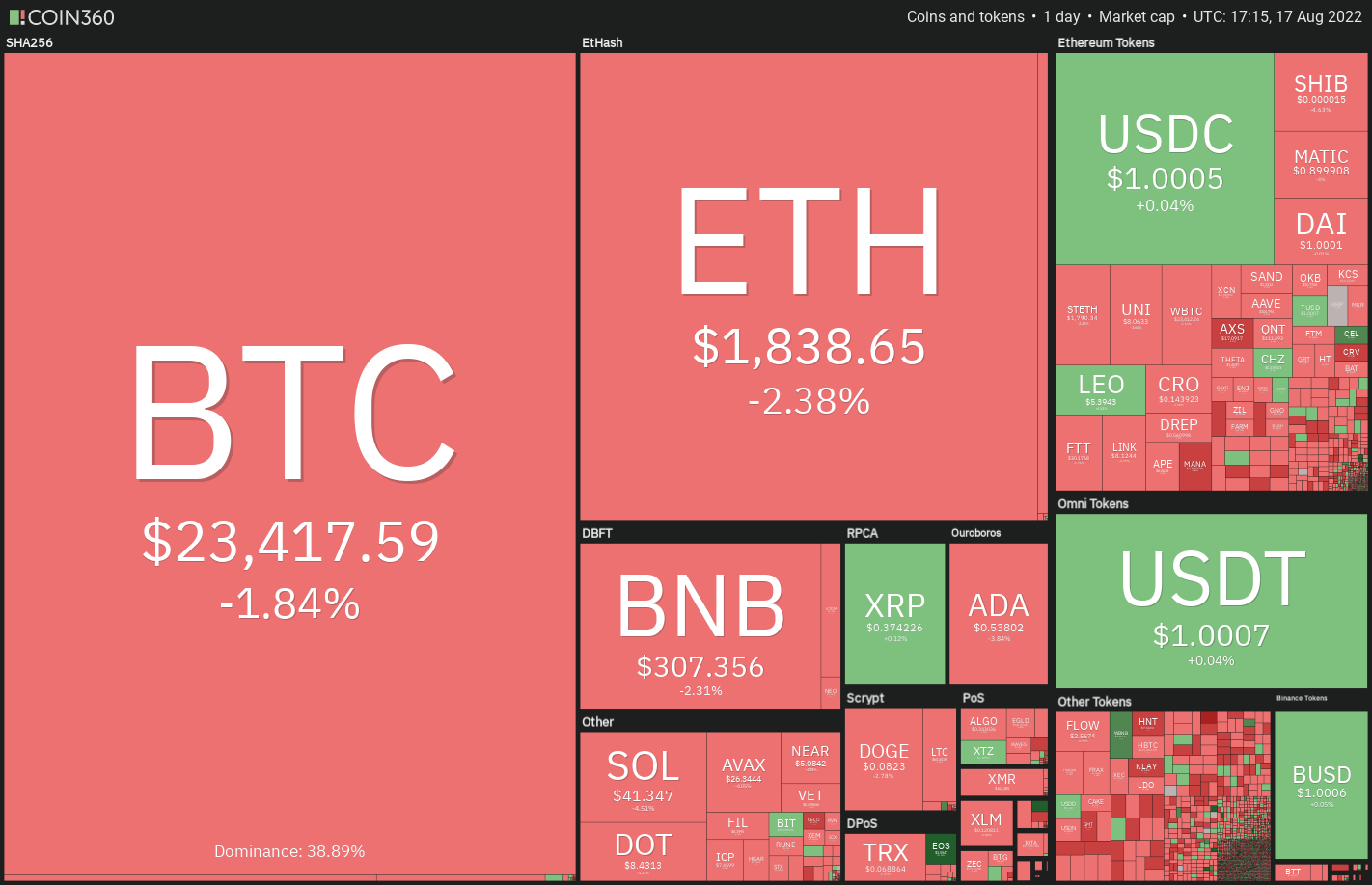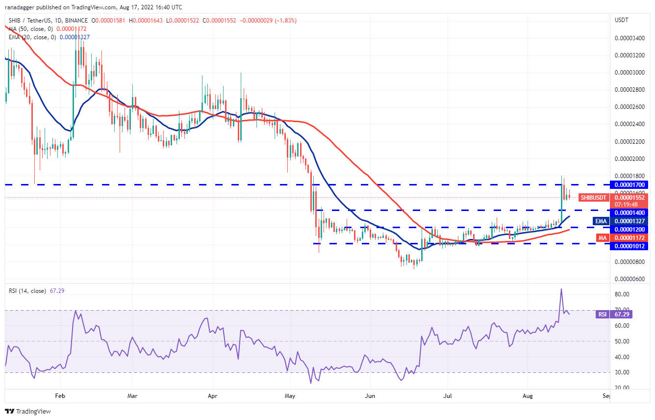 Análisis de precios del 17 de agosto: BTC, ETH, BNB, XRP, ADA, SOL, DOGE, DOT, SHIB, AVAX
