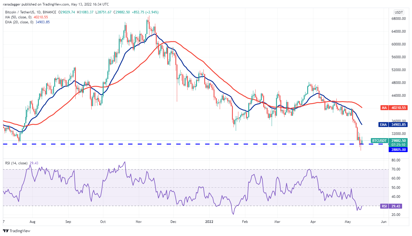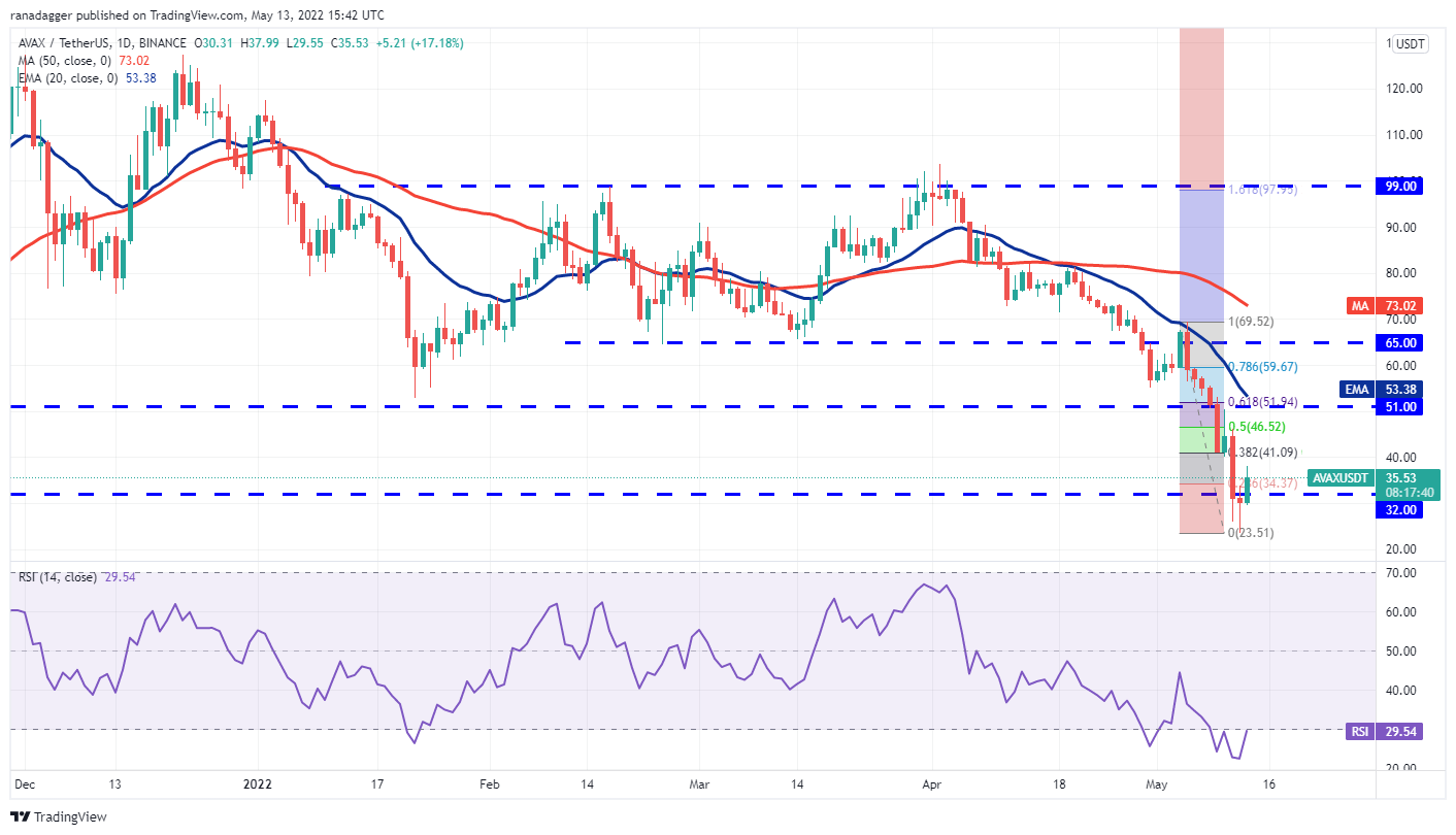 Avalanche (AVAX) rompió por debajo del soporte crucial de USD 32 el 11 de mayo y los bajistas intentaron reanudar el descenso el 12 de mayo. Sin embargo, la larga cola de la vela del día sugiere una fuerte compra en los niveles inferiores.