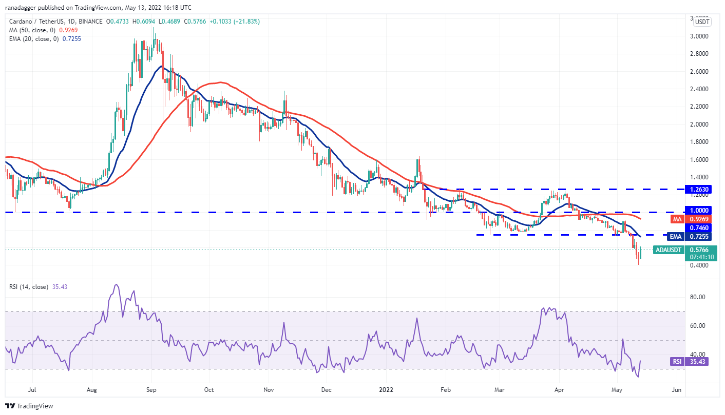Cardano (ADA) se desplomó hasta los USD 0.40 el 12 de mayo, lo que llevó al RSI a la zona de sobreventa. Los compradores compraron esta caída y están intentando iniciar un rally de alivio.