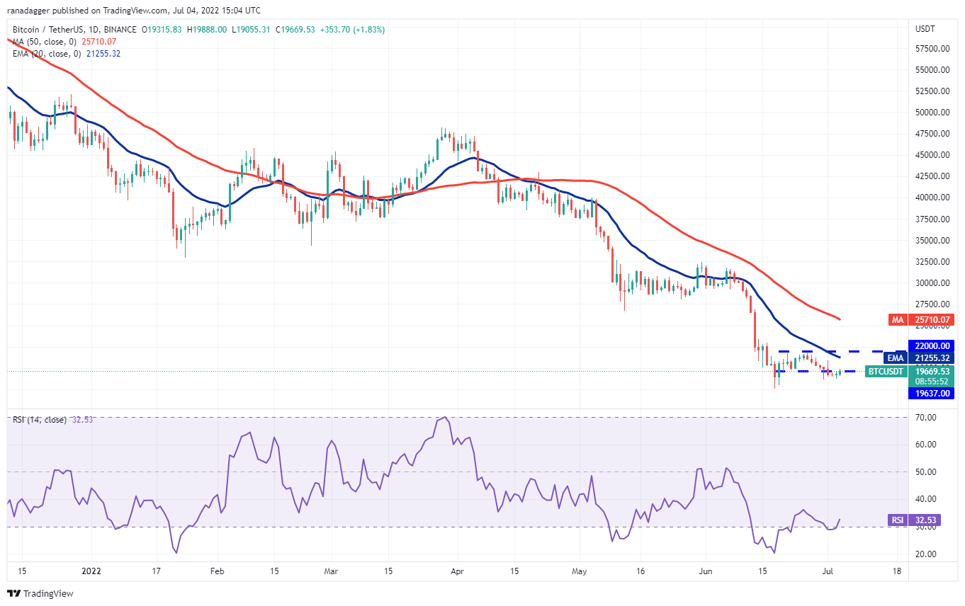Por el contrario, si el precio baja de la EMA de 20 días, sugerirá que el sentimiento sigue siendo bajista y los traders están vendiendo en los repuntes. Esto podría aumentar la posibilidad de volver a probar el soporte crítico de USD 17,622. Si este soporte se resquebraja, el descenso podría extenderse hasta los USD 15,000.