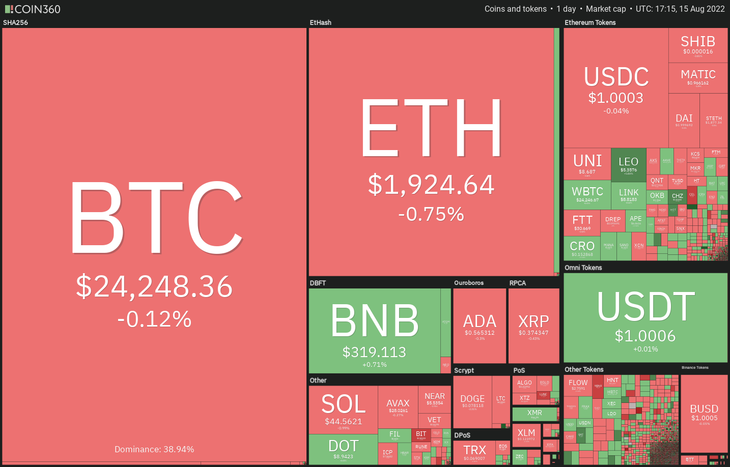 Análisis de precios al 8/15: BTC, ETH, BNB, XRP, ADA, SOL, DOGE, DOT, SHIB, AVAX