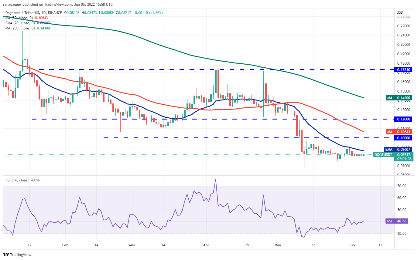 Dogecoin (DOGE) está atascado entre la EMA de 20 días (USD 0.08) y USD 0.08 durante los últimos días, pero es poco probable que este comercio de rango estrecho continúe por mucho tiempo.