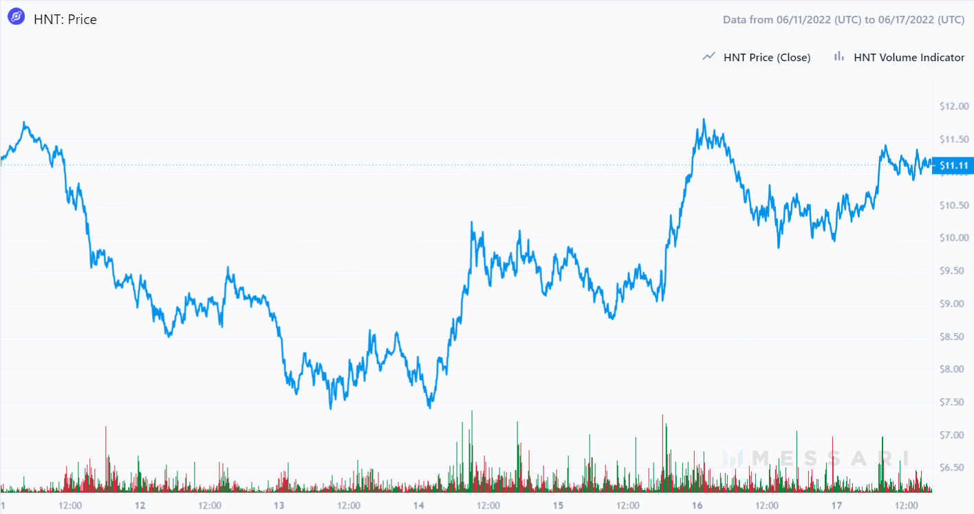"A HNT cresceu 28,9% nas últimas duas semanas e 21,2% no mês passado e tem um valor de mercado de US$ 1,32 bilhão", aponta.