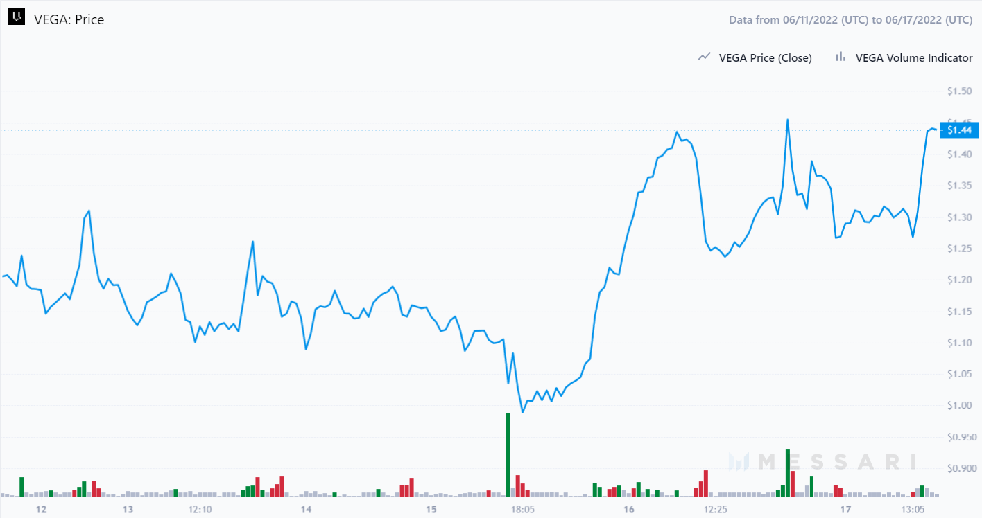 "Nas últimas 24 horas, a VEGA ganhou 9,3% e na semana passada subiu 2,2%, o que é bastante no contexto de uma venda mais ampla no mercado de criptomoedas. Atualmente, o token está avaliado em US$ 27,49 milhões", finaliza.