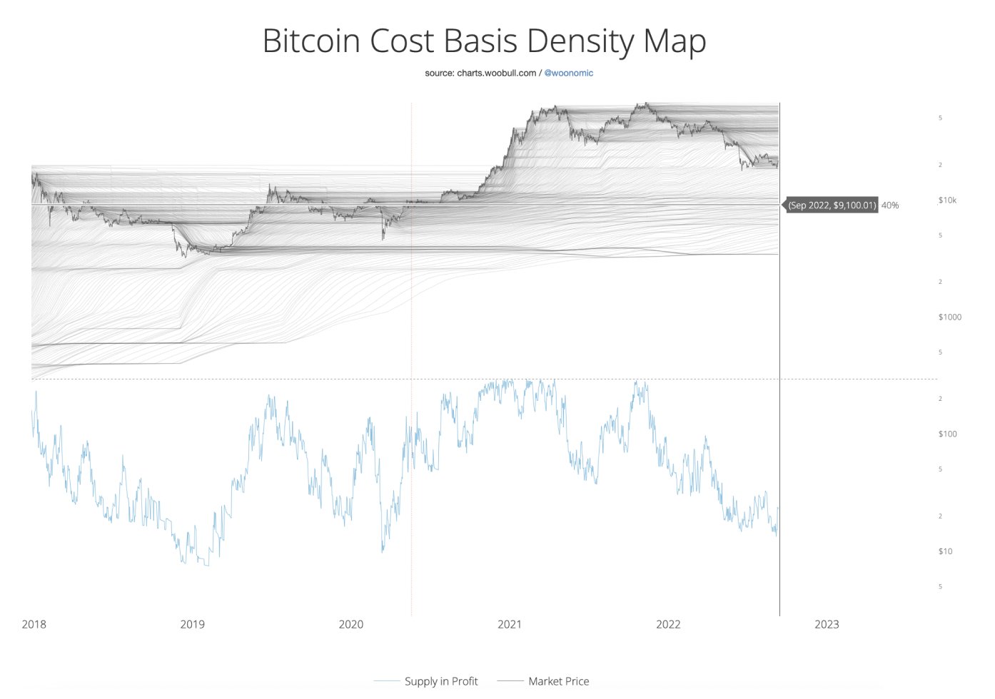 Woo añadió que en el pozo de los anteriores mercados bajistas de Bitcoin, la oferta con pérdidas perforó "limpiamente" una línea de tendencia a largo plazo, algo que también no ha ocurrido esta vez.