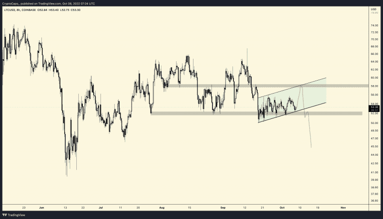 O próximo passo é a rede de pagamentos peer-to-peer (P2P) LTC, que Capo vê subindo mais de 9% em direção à sua meta de US$ 58. Atualmente, o preço da LTC é cotado a US$ 52,28, de acordo com o CoinGecko.