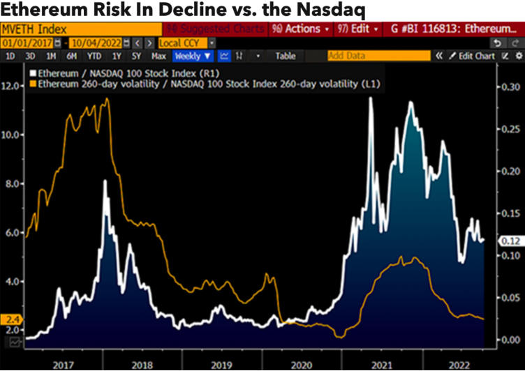 Olhando para o Ethereum, os analistas da Bloomberg dizem que o ETH pode estar em um ponto em que se torna mais estável do que os instrumentos financeiros tradicionais durante os mercados macro em baixa.