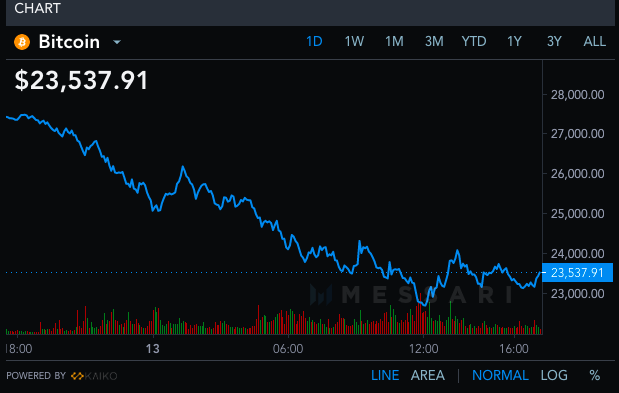 Os investidores em criptomoedas entraram em pânico nesta segunda, 14, quando o preço do Bitcoin (BTC) despencou mais de 15%, levando o valor da principal criptomoeda do mercado a ser negociado abaixo de US$ 24 mil. O Bitcoin caiu aproximadamente 14% nas últimas 24 horas, enquanto o Ethereum caiu mais de 16% e a Dogecoin perdeu 17%.