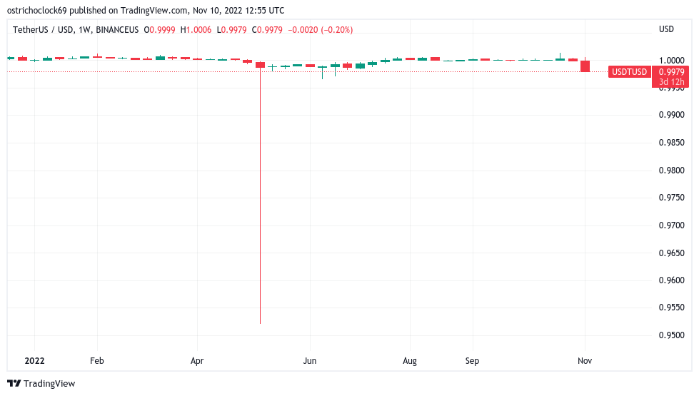 Durante las secuelas de Tether LUNA, USDT bajó brevemente de USD 0.96, pero pronto recuperó su vinculación con el USD.