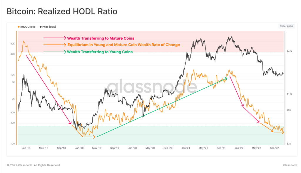 Движение к равновесию темпов изменения благосостояний владельцев «старых» и «молодых» монет зачастую наблюдается вокруг экстремумов рынка вроде дна 2018-2019 годов, пояснили специалисты.