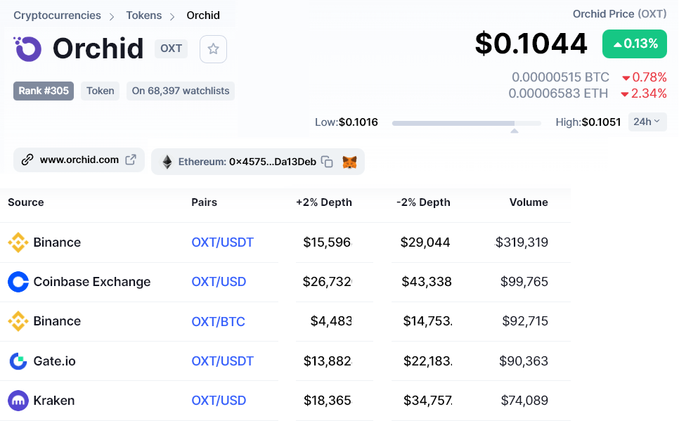 The example above shows Orchid Protocol token, which despite being listed on Binance, Coinbase, Kraken and Kucoin, amasses $675,000 in daily volume. This effect causes the 2% order book depth to range between 9% to 47% of the daily trading activity, which sounds quite off.
