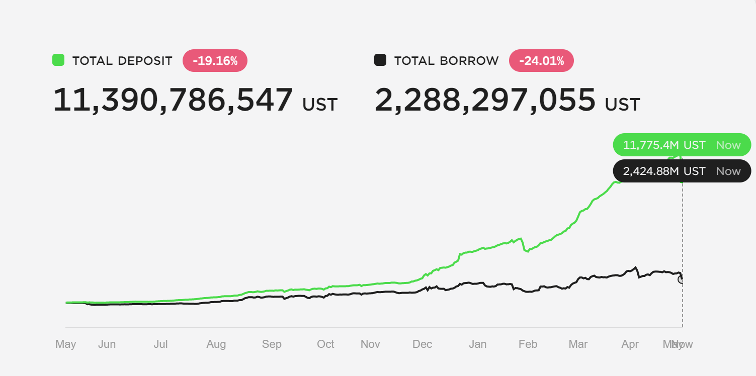 Firstly the deposits on the DeFi protocol declined, and within 48 hours, those who had invested their UST into the dApp took out over $2.7 million worth of UST which also worried the people who were cadging UST from the protocol and borrowing observed a 24% reduction.
