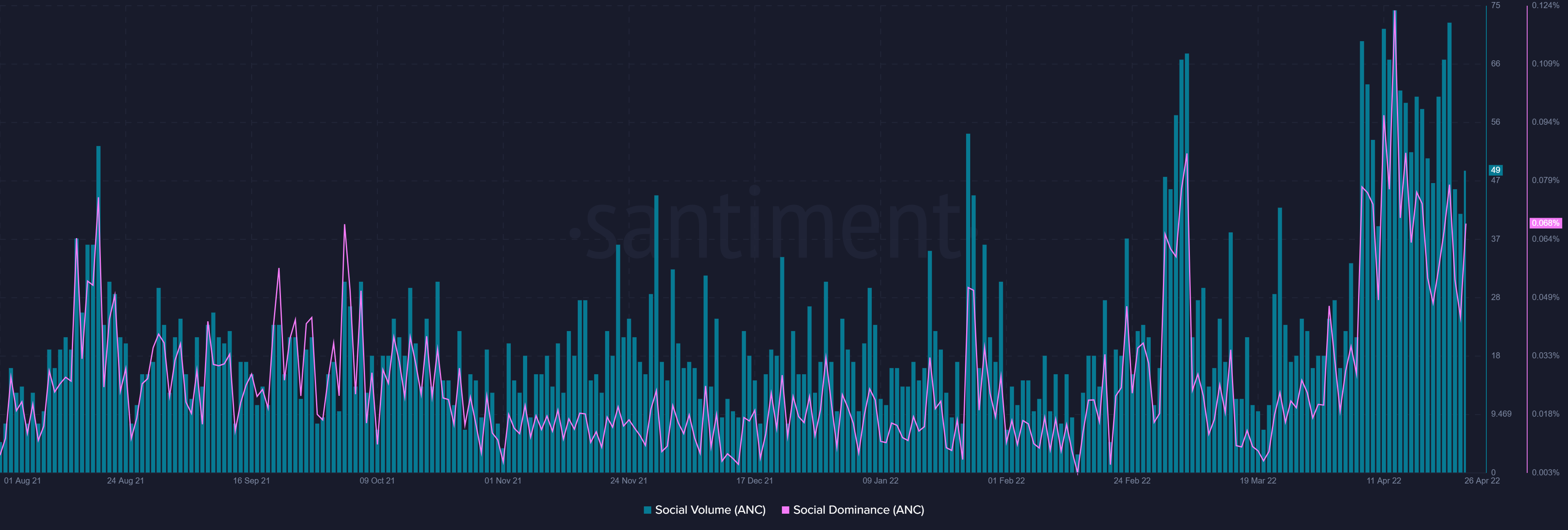 Since Anchor is the biggest protocol on the chain, it was bound to be the center of attention which resulted in its presence on the social fronts shooting up and the protocol noticing a much higher dominance than ever before.