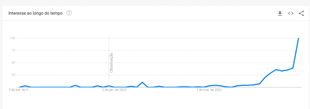 No Brasil o fenômeno Andrew Tate passou desapercebido até bem pouco tempo. Mas no meio do mês de agosto começou uma explosão de buscas no Google pelo seu nome e a tendência ainda é de alta, como mostra o gráfico abaixo: