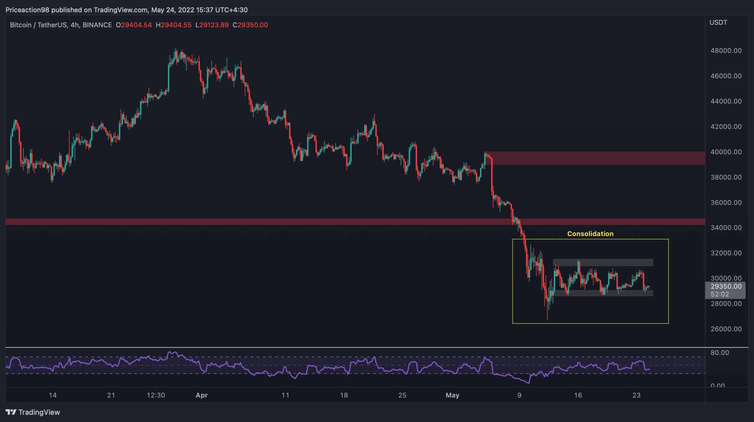 Bitcoin’s rapid downtrend has halted, as the price has been consolidating in the $29K-$30K area over the last few days. The $28K-$30K bottom of the 2021 crash is currently acting as support and has held the price for a couple of weeks.